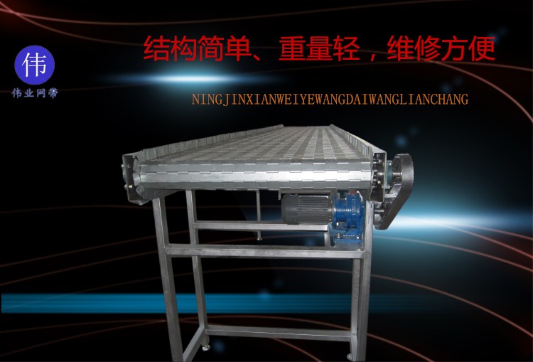 6、鏈板輸送機一般都可以直接用水沖洗或直接浸泡在水中,設(shè)備清潔方便,能滿足食品、飲料行業(yè)對衛(wèi)生的要求。
